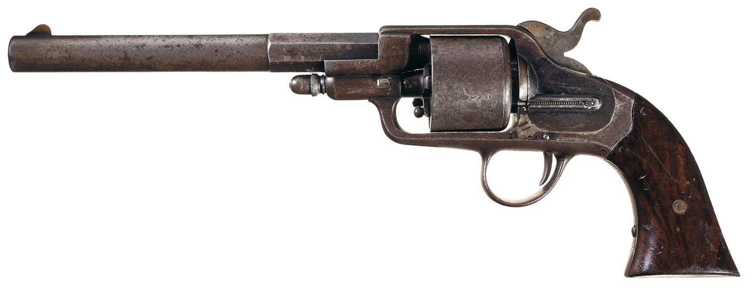 Only a very limited number of these well-designed revolvers were manufactured around the mid-1860s by the National Arms Co. By some estimates only 6 or 7 of these revolvers still exist making them among the rarest revolvers of the 19th century.