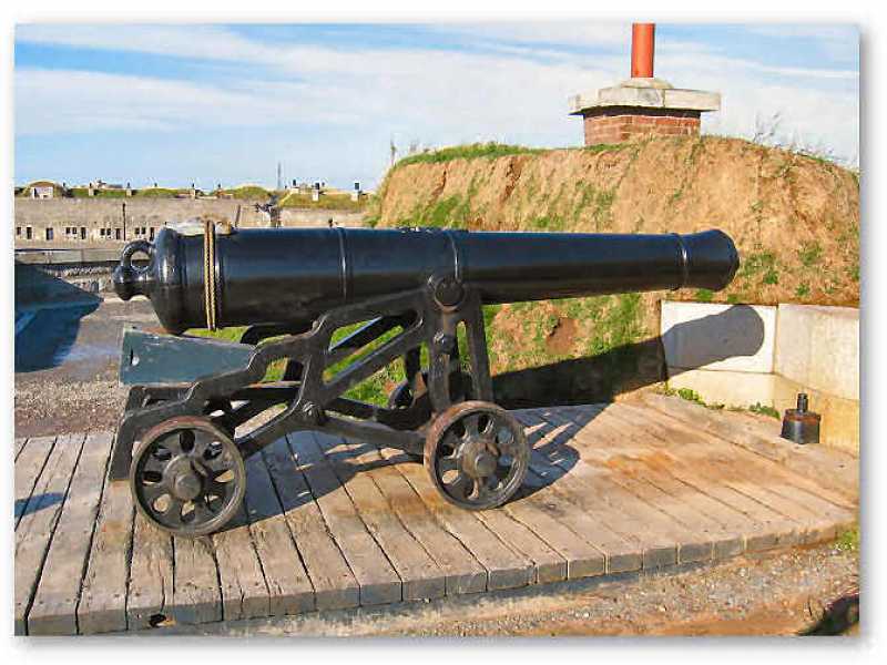 Hey, DD, I could have posted this South African cannon, but my pic doesn't have someones pretty wife standing behind the cannon. This gun is big, I'd guess a 32-pounder, but at the least a 24 pdr.